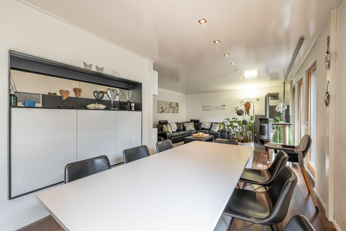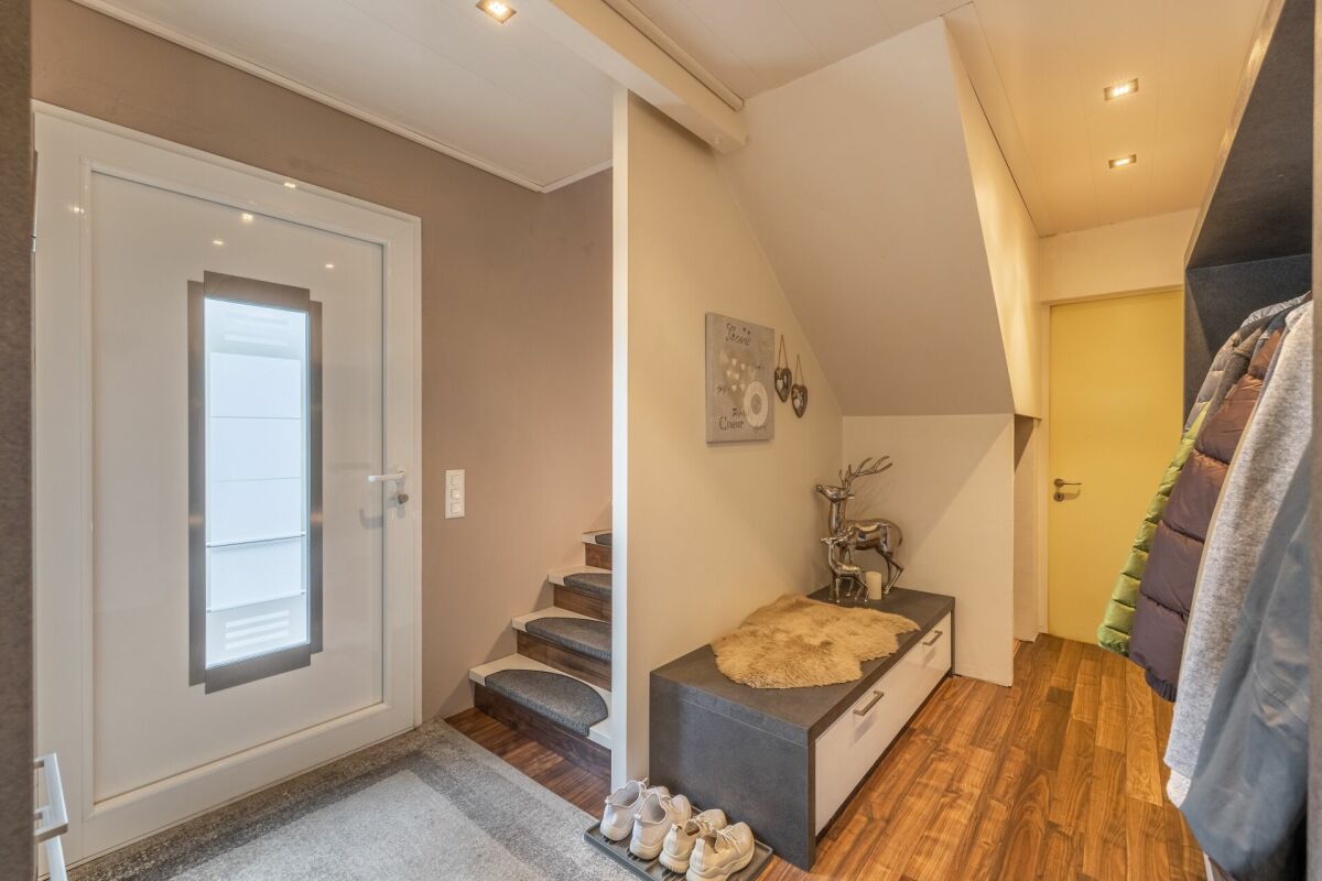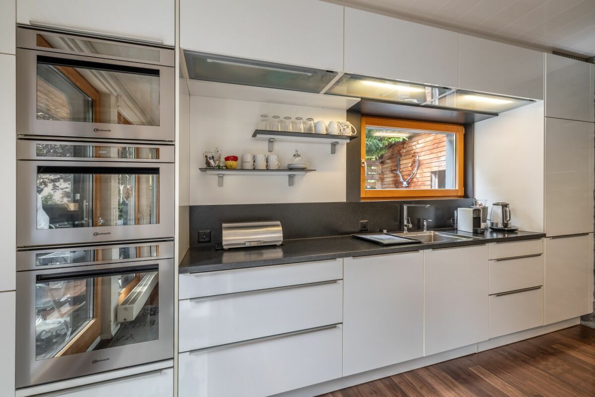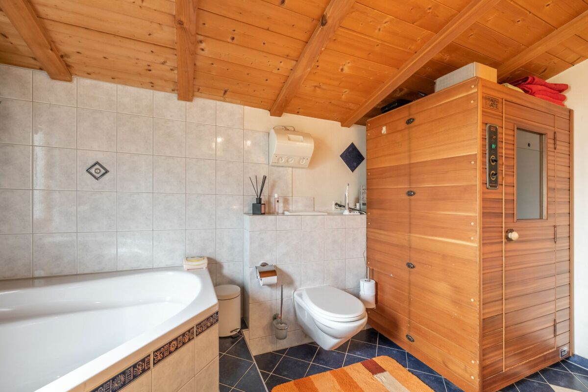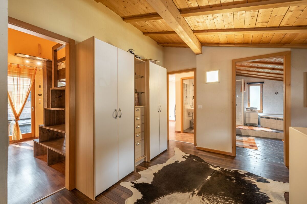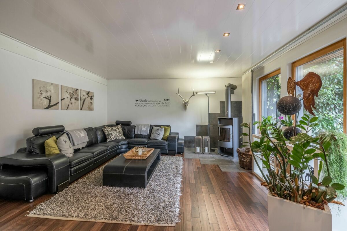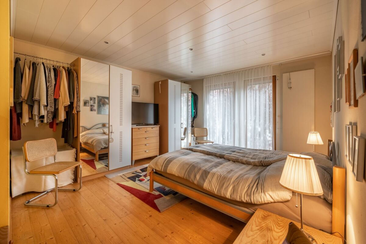 Im Erdgeschoss verspricht die offene Küche mit Ess- und Wohnbereich viel Platz zum Kochen und Entspannen. Der Schwedenofen im Wohnzimmer sorgt für gemütliche Stunden. Dazu bietet die Speisekammer zusätzlichen Raum zur Aufbewahrung von Lebensmitteln. Dank raumhohen Fenstern sind die Lichtverhältnisse optimal. Der Heizungsraum, das Büro und das Badezimmer mit Dusche/WC vervollständigen diese Wohnebene. Drei Schlafzimmer sorgen im Obergeschoss für Rückzugsmöglichkeiten und ein Büro bietet Platz zum arbeiten. Das Hauptbadezimmer mit Dusche und Eckbadewanne runden das Raumprogramm ab. Geniessen Sie dazu entspannte Minuten in der Sauna, welche sich ebenfalls im grosszügigen Badezimmer befindet.