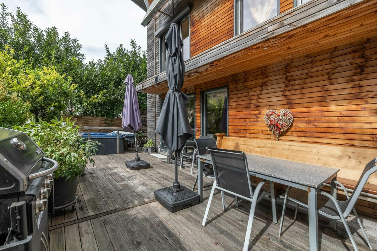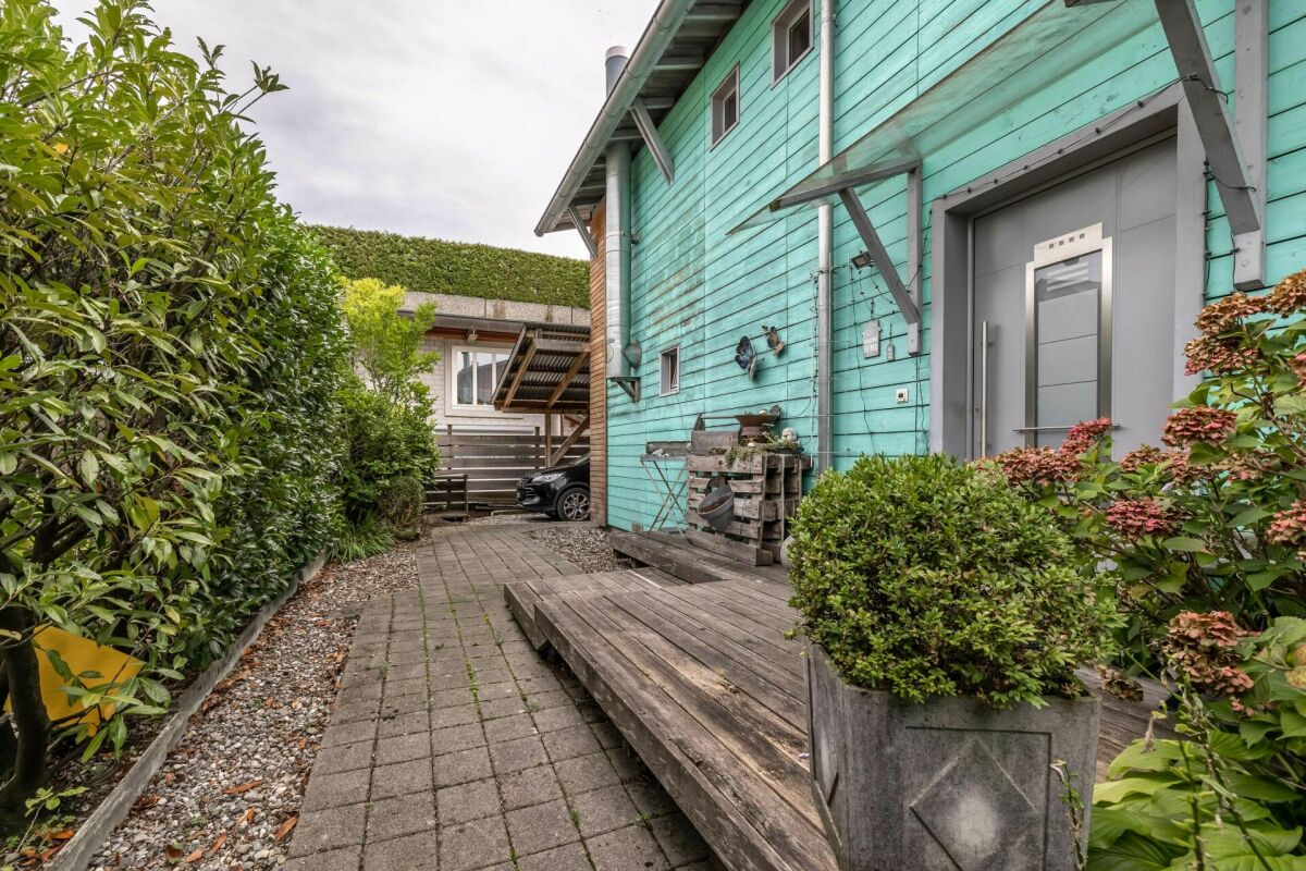 Der Aussenbereich ist von vielen Bäumen und Pflanzen umgeben und verspricht viel Privatsphäre. Für Fahrzeuge wurde ein Carport errichtet. Das Haus verfügt über eine thermische Solaranlage.