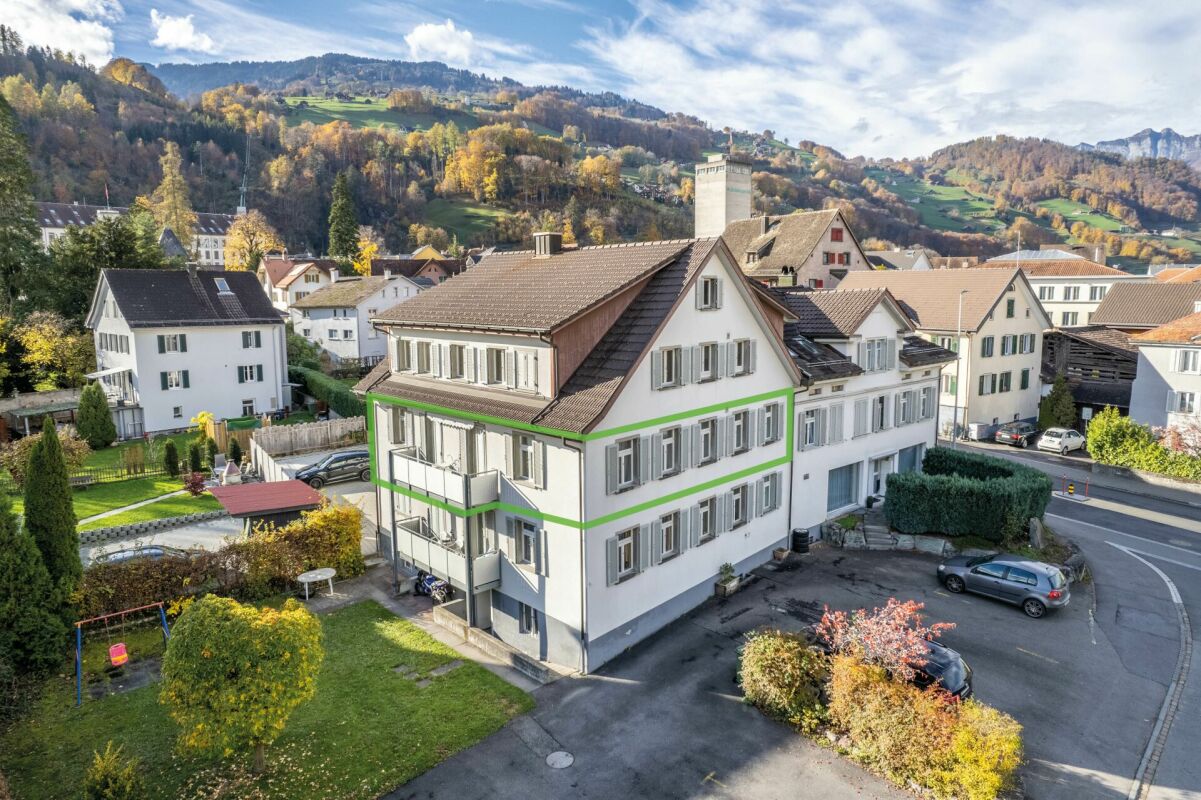 Diese 4 ½-Zimmer-Eigentumswohnung befindet sich im 1. Obergeschoss des gut unterhaltenen Mehrfamilienhausens, an beliebter und zentrumsnaher Wohnlage in Flums.