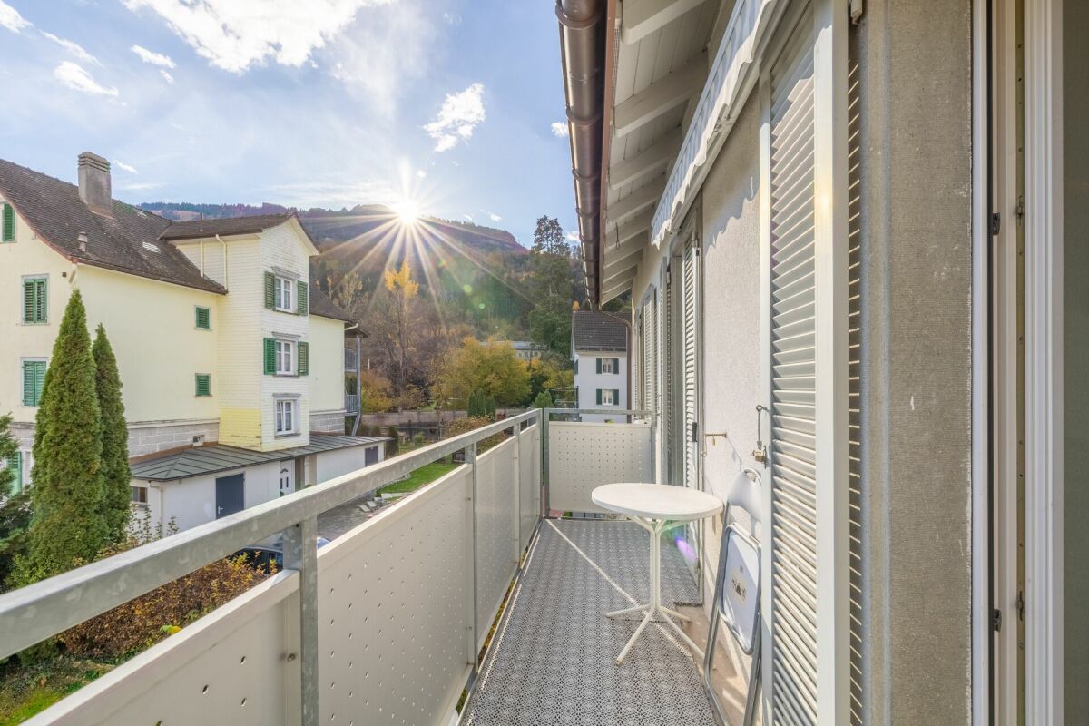 Die sehr gepflegte Wohnung weist einen durchdachten und grosszügigen Grundriss auf. Vom gemütlichen Wohnzimmer sowie von einem der drei Zimmer gelangen Sie direkt auf den Balkon, von welchem Sie eine fantastische Aussicht in die umliegende Bergwelt geniessen. Sowohl die Küche wie auch das Badezimmer und Gäste-WC überzeugen mit schlichtem, hellen und zeitlosem Design.