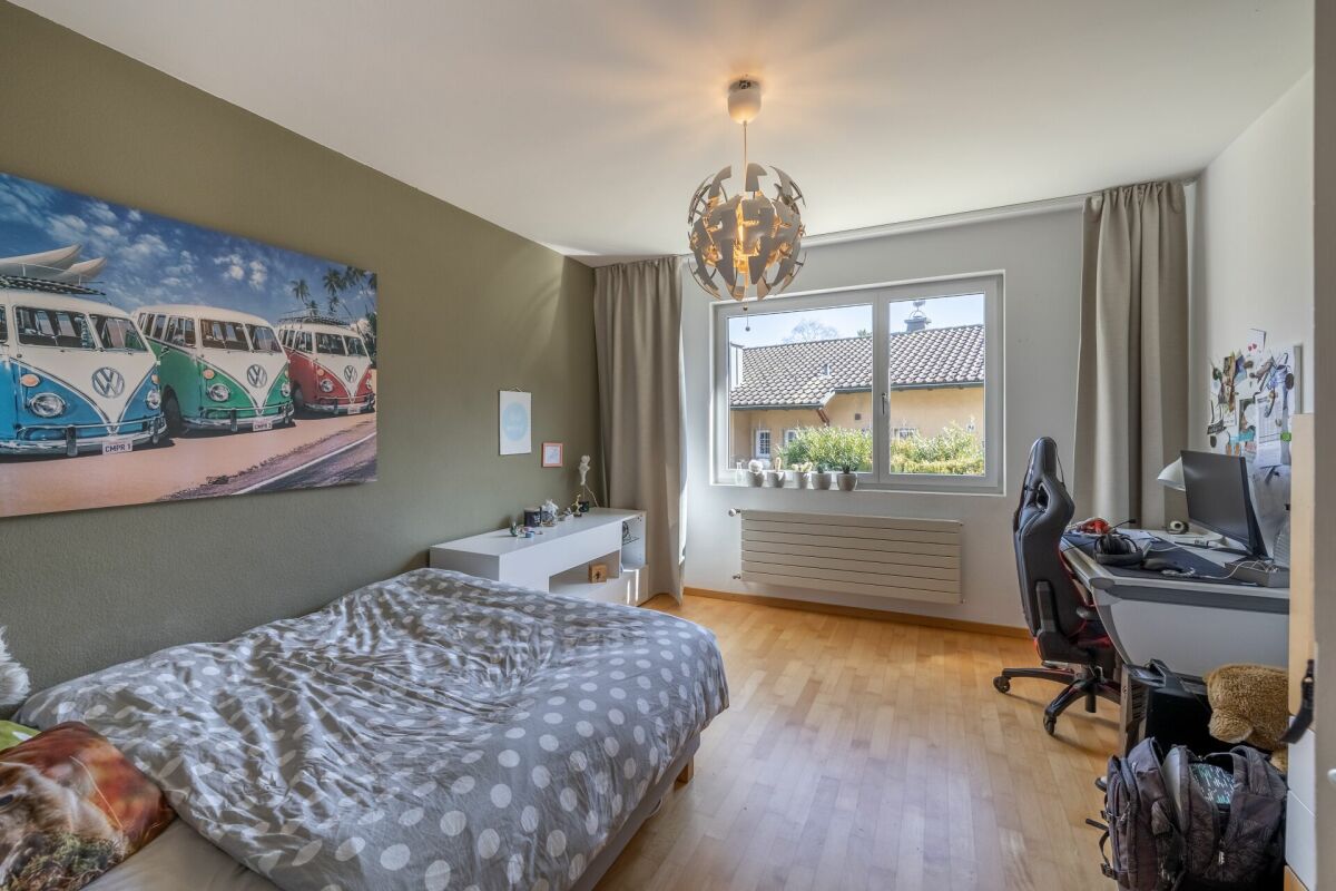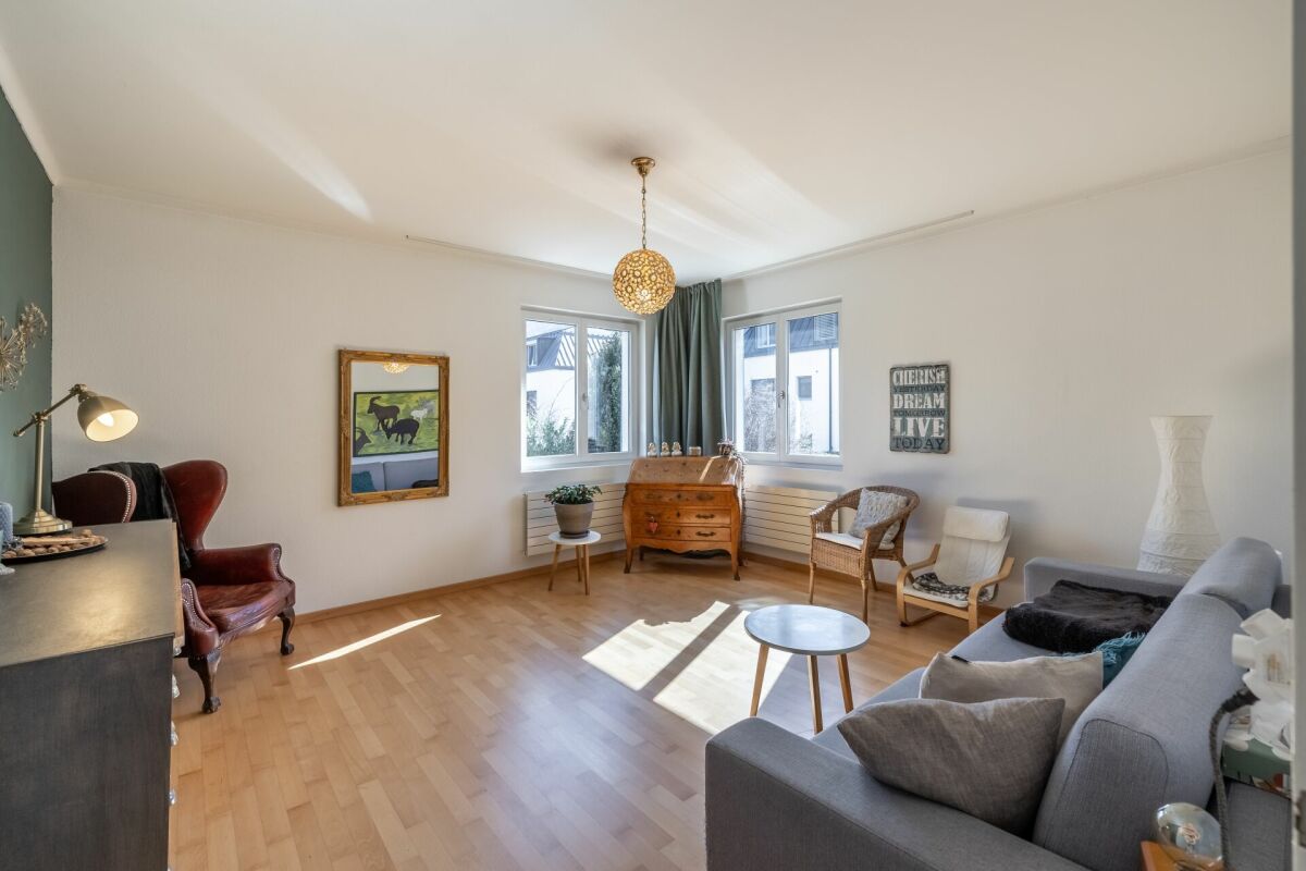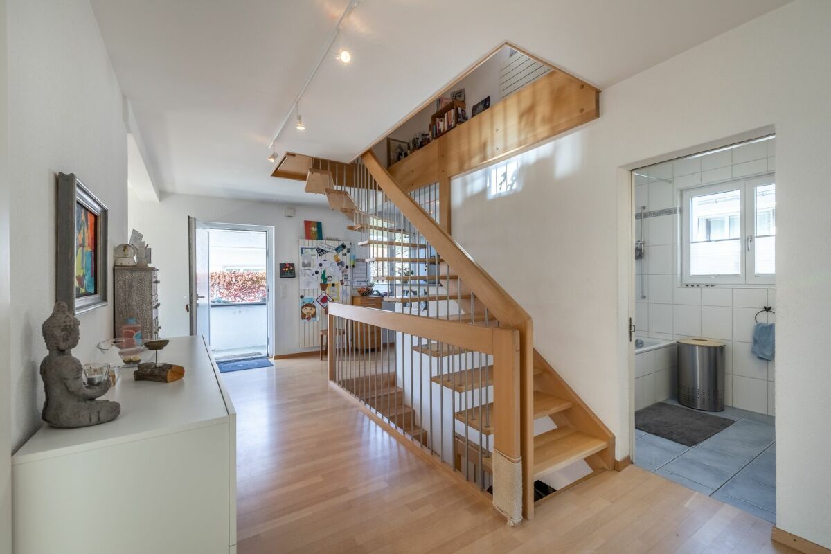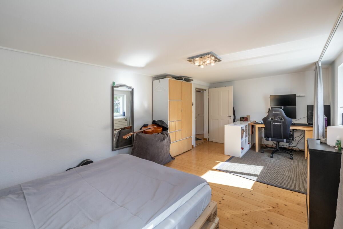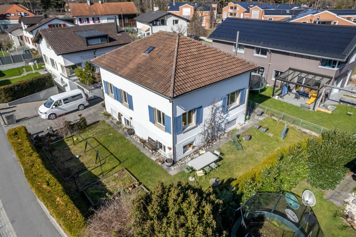 Das Entrée eröffnet sich in den Koch-Essbereich mit Blick auf das gemütliche Wohnzimmer. Zwei Schlafzimmer und ein Badezimmer mit Badewanne runden das Raumprogramm im Erdgeschoss ab. Im Untergeschoss (parterre souterrain) sind zwei weitere Schlafzimmer und ein Badzimmer mit Dusche/WC untergebracht. Im Jahr 2002 wurde das Dach aufgestockt sowie ausgebaut. Dieses Geschoss bietet mit einer Fläche von rund 36 m² genügend Raum für Ihren individuellen Bedarf wie z.B. Homeoffice. Im gleichen Jahr wurde die Liegenschaft umfassend saniert, wie zum Beispiel Küche, Badezimmer, Heizung, usw.