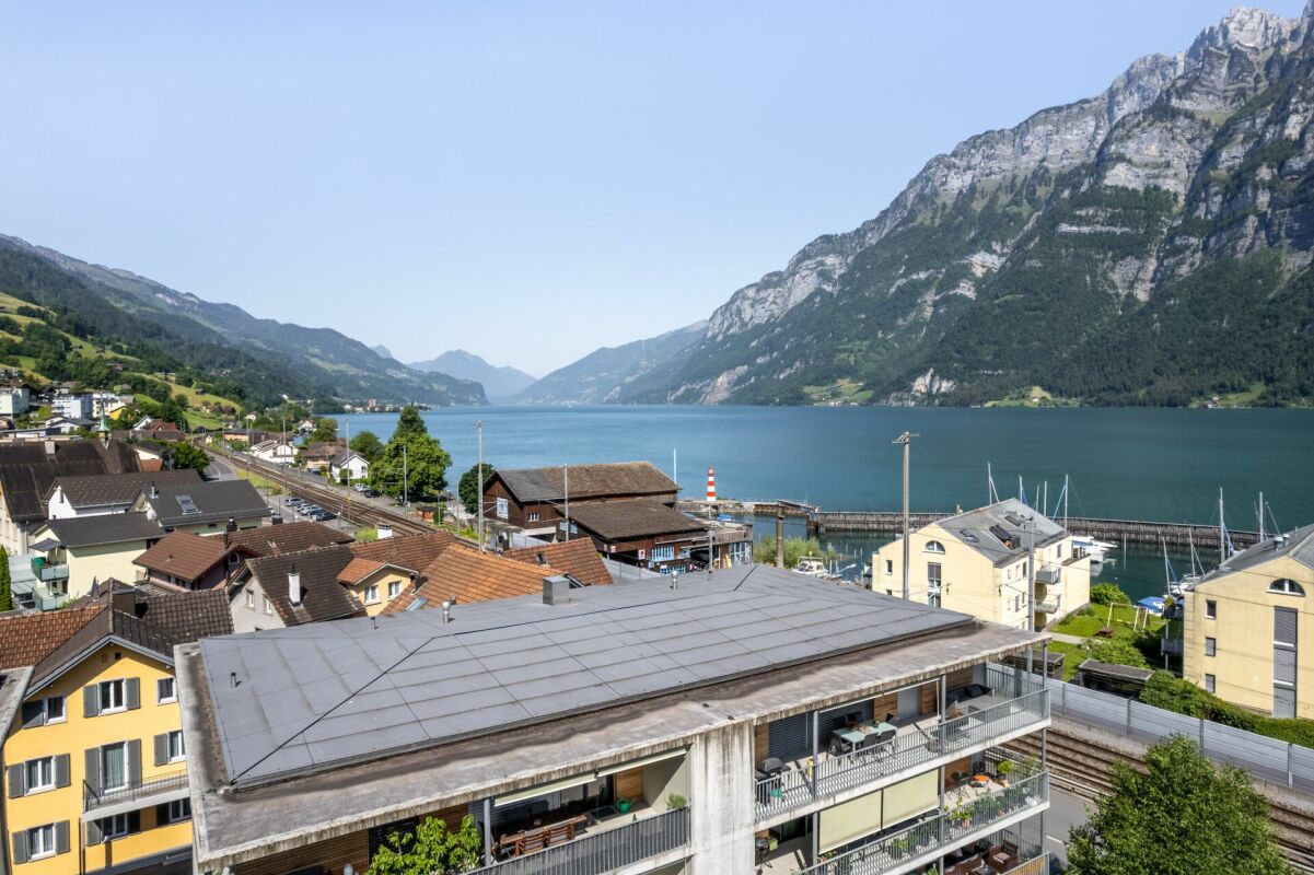 Durch den optimalen Standort profitieren Sie von der unmittelbaren Nähe zum Bahnhof und zur Luftseilbahn Flumserberg, welche Sie direkt ins Bergparadies führt. Ebenfalls nur einen Steinwurf entfernt befindet sich das Seeufer mit öffentlichem Strandbad.
