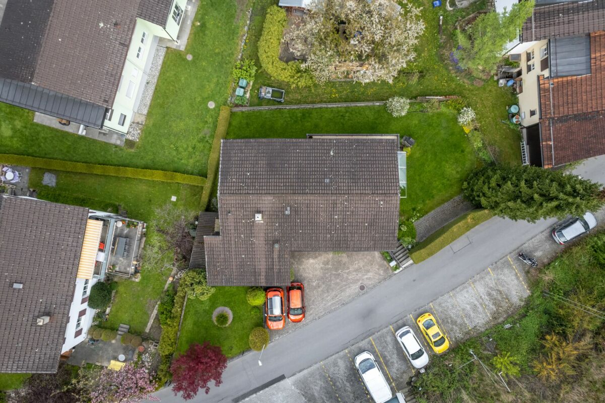 Neben der Einzelgarage stehen Aussenparkplätze für mindestens drei weitere Fahrzeuge zur Verfügung.