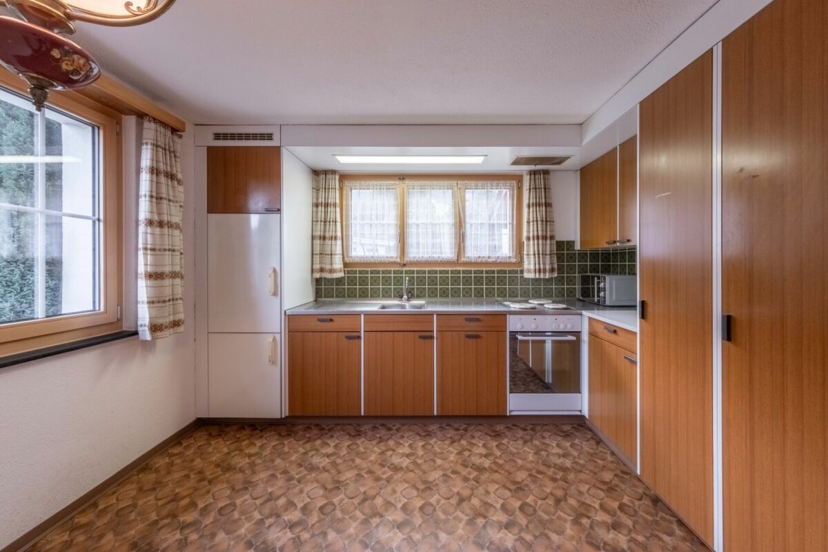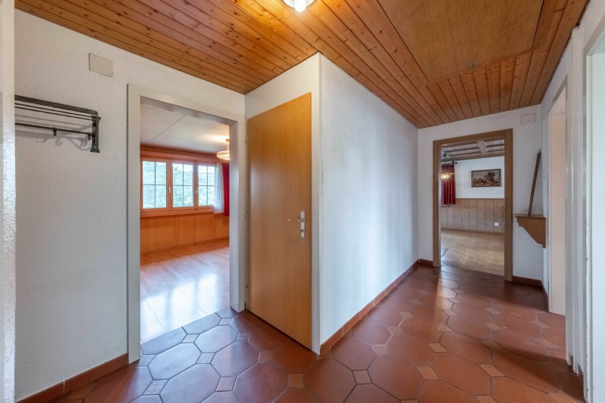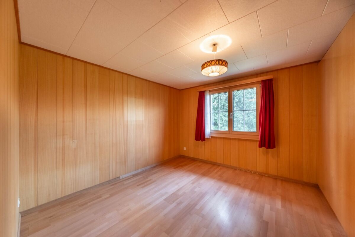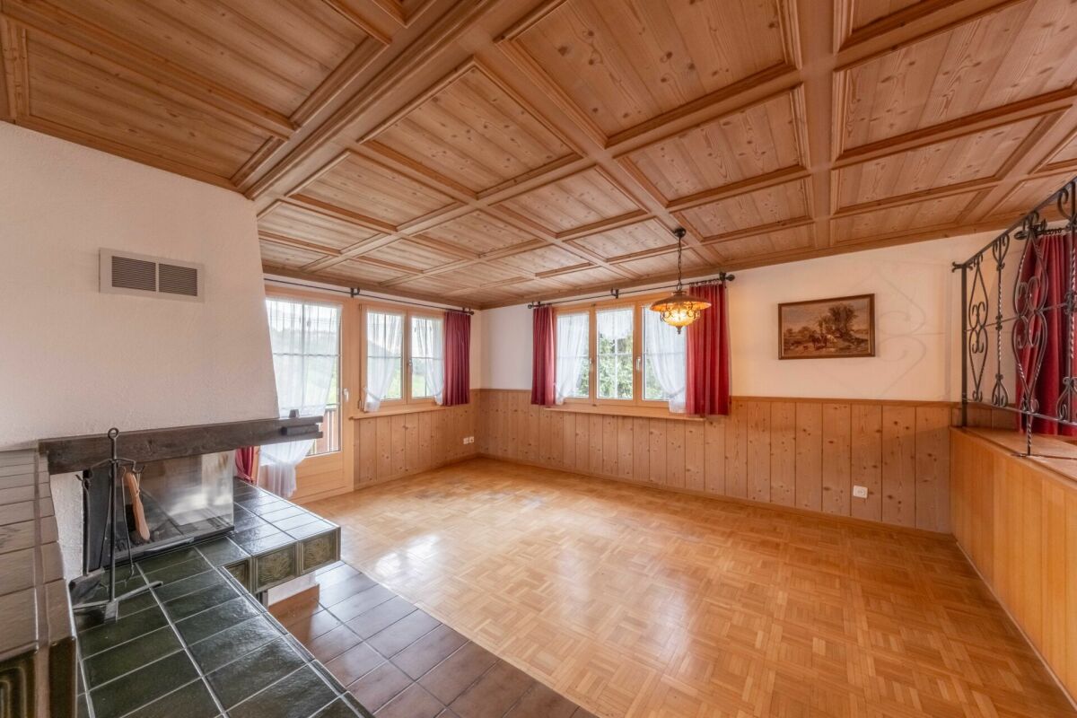 Das Haus befindet sich am Ende einer Sackgasse, an ruhiger und idyllischer Lage, angrenzend an die Landwirtschaftszone. Das bezaubernde Eigenheim strahlt dank seiner nostalgischen Elemente und den holzvertäfelten Wänden viel Wärme und Gemütlichkeit aus. Der grosszügige Wohnbereich mit gemütlichem Cheminée lädt zu entspannten Abenden im Kreise Ihrer Familie ein. Die geräumige Küche ist der perfekte Ort, um kulinarische Kreationen zu zaubern. Drei geräumige Schlafzimmer sowie ein Badezimmer mit Badewanne runden die Wohnetage ab.