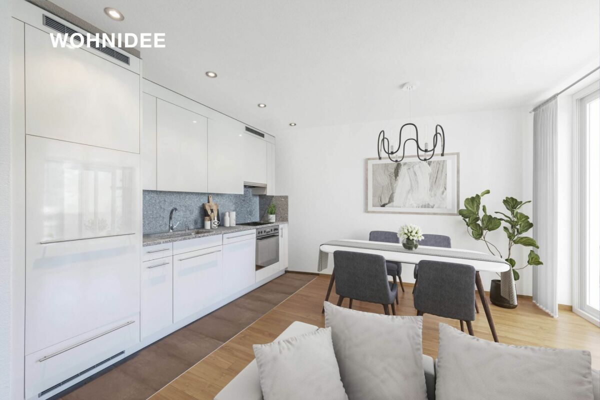 Diese charmante Wohnung wurde sorgfältig gestaltet, um Ihnen einen optimalen Komfort zu bieten. Beim Betreten werden Sie von einer warmen und einladenden Atmosphäre begrüsst, die Sie sofort in den Bann ziehen wird. Die offene Gestaltung des Wohnbereichs sorgt für eine nahtlose Verbindung zwischen Wohnzimmer, Essbereich und Küche. Die Küche ist mit modernen Geräten ausgestattet, die das Kochen zum Vergnügen macht. Das Schlafzimmer ist ein Rückzugsort der Ruhe. Mit ausreichend Platz für stilvolle Möbel bietet es Ihnen die Möglichkeit, sich zurückzulehnen und den stressigen Alltag hinter sich zu lassen. Die grossen Fenster lassen viel natürliches Licht herein und schaffen eine beruhigende Atmosphäre.