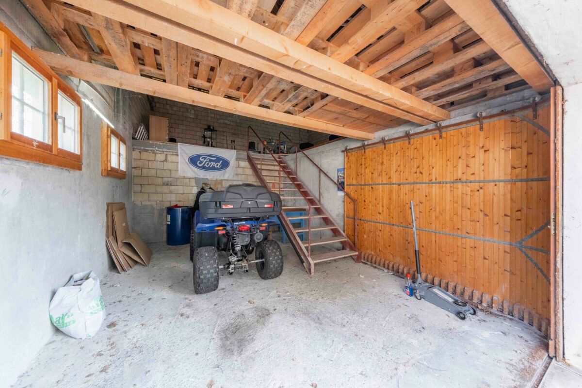 Ein besonderes Highlight ist die grosse Garage/Werkstatt, die sich ideal für Handwerker oder Hobbybastler eignet. Zusätzlich stehen zahlreiche Nebenräume zur Verfügung, die als Lagerräume oder Autoabstellplätze genutzt werden können. Der Umschwung bietet viel Platz zum Werken und Wirken – hier können Sie Ihre Träume verwirklichen!