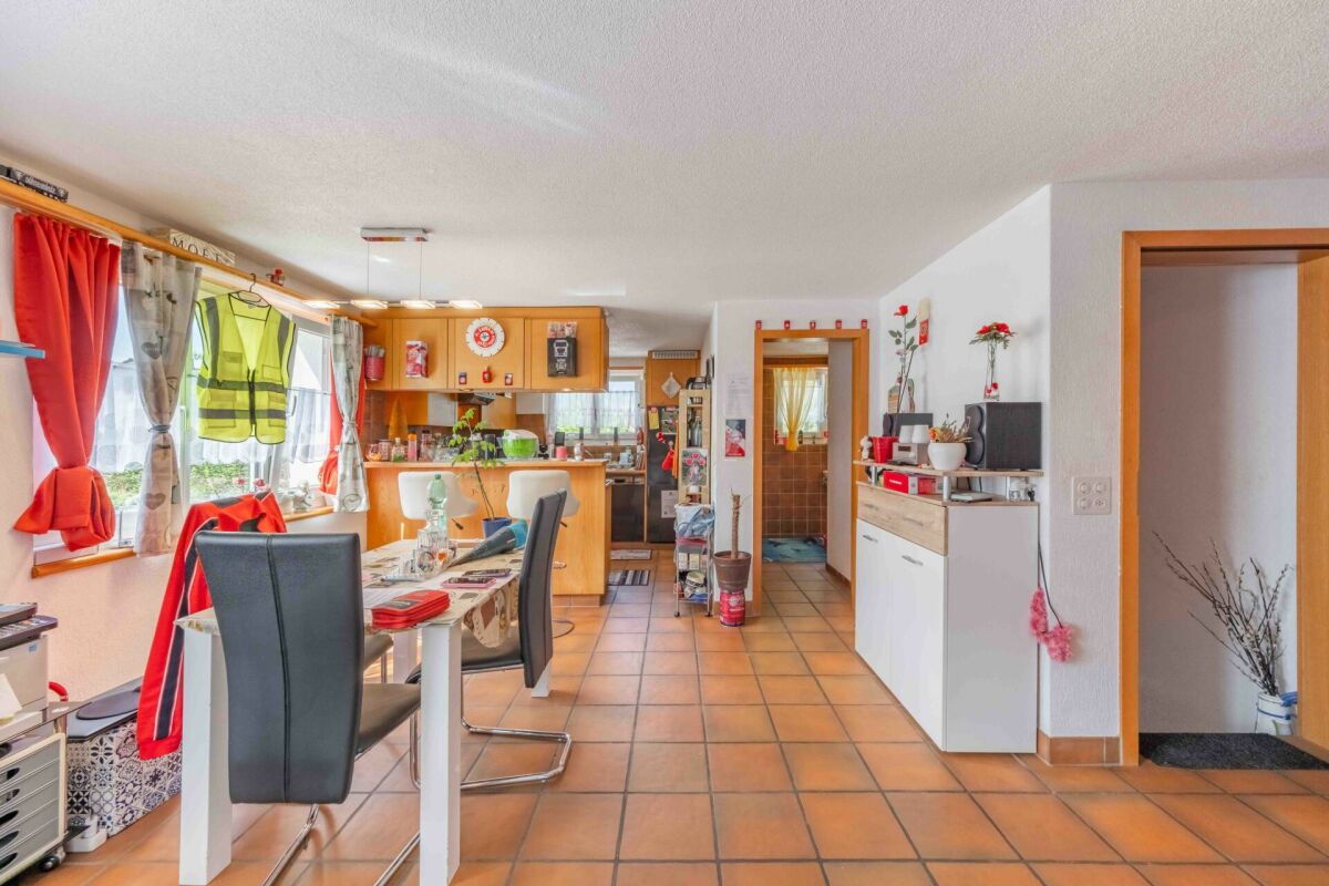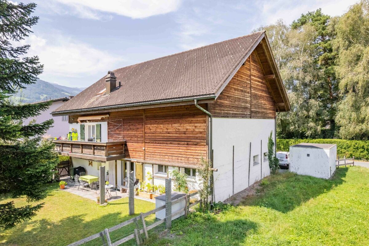 Zum Verkauf steht ein charmantes Einfamilienhaus mit Einliegerwohnung, das sich auf einem grosszügigen Grundstück von 1’175 m² befindet. Das 1986 erbaute Haus mit 135 m² Wohnfläche und 80 m² Nutzfläche (Garage/Werkstatt) bietet ein beeindruckendes Gebäudevolumen von 1’274 m³. Das Objekt verfügt über eine unverbaubare Aussicht, die Sie jeden Tag aufs Neue begeistern wird.