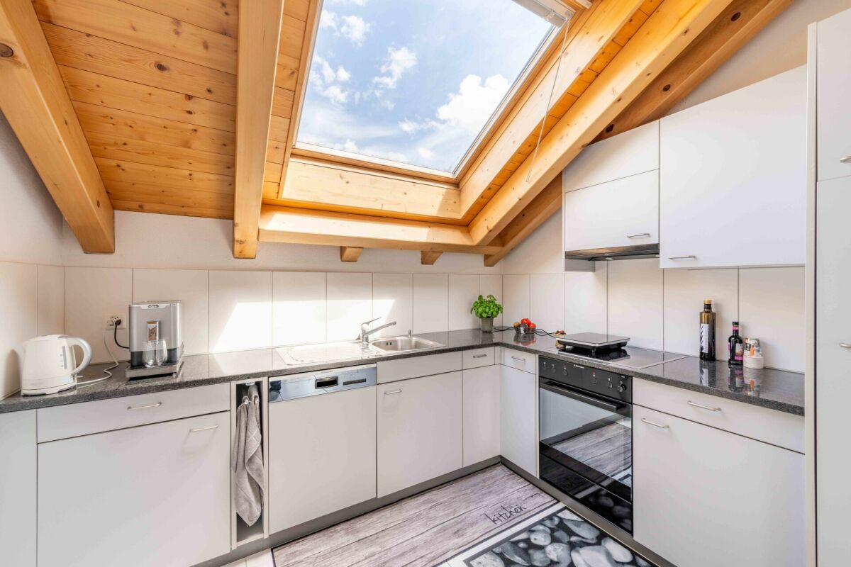 Der helle, offene Wohn- und Essbereich mit direktem Zugang zur Sonnenterrasse schafft ein Ambiente zum Wohlfühlen – ideal für entspannte Stunden im Freien oder gesellige Abende mit Familie und Freunden. Drei grosszügig geschnittene Schlafzimmer bieten viel Raum für individuelle Nutzungsmöglichkeiten. Die moderne Küche ist funktional und einladend gestaltet und bietet viel Platz zum Kochen und Verweilen.