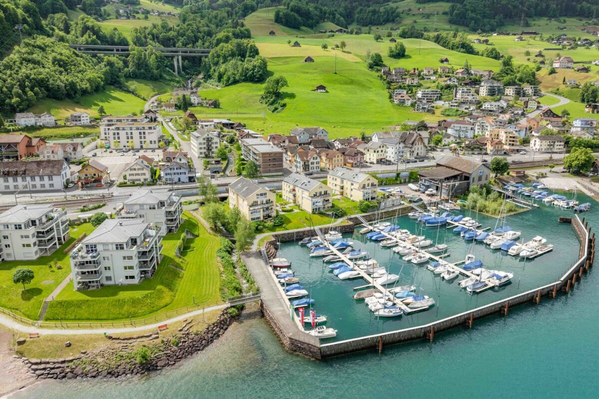 Nur wenige Gehminuten entfernt befinden sich die Gondelbahn zum Flumserberg, der Bahnhof sowie Einkaufsmöglichkeiten – ideal für den Alltag und spontane Ausflüge. Ob Wandern, Skifahren, Mountainbiken oder Bootsfahrten: In dieser Umgebung wird jede Jahreszeit zum Erlebnis. Optional steht bei Verfügbarkeit ein Bootsliegeplatz zur Miete bereit – ein weiteres Highlight für Wassersportliebhaber.