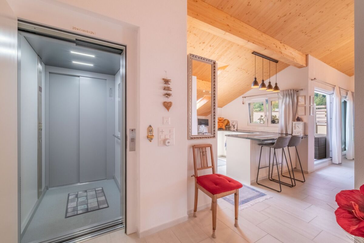 Ein besonderes Highlight ist der Lift, welcher Ihnen direkten Zugang zur Wohnung bietet. Im Untergeschoss steht Ihnen ein privater Keller- und Hobbyraum (ca. 30 m²) mit eigenem Waschturm zur Verfügung. Dieser sorgt für zusätzlichen Komfort und ermöglicht zudem den direkten Zugang zum Parkplatz. Die gesamte Wohnung ist mit hochwertigen 3-fach verglasten Fenstern ausgestattet, welche für optimale Energieeffizienz und Ruhe sorgen. Sämtliche Storen lassen sich bequem elektrisch bedienen. Die Dachfenster verfügen zudem über elektrisch steuerbare Beschattungsrollos, die zusätzlichen Wohnkomfort garantieren. Zum Angebot gehört ausserdem ein Aussenparkplatz, welcher bereits im Kaufpreis inbegriffen ist.