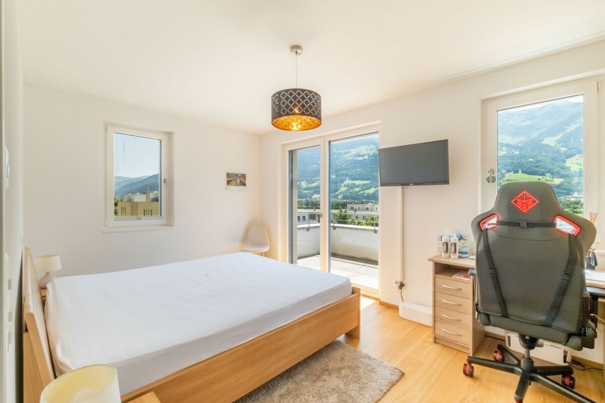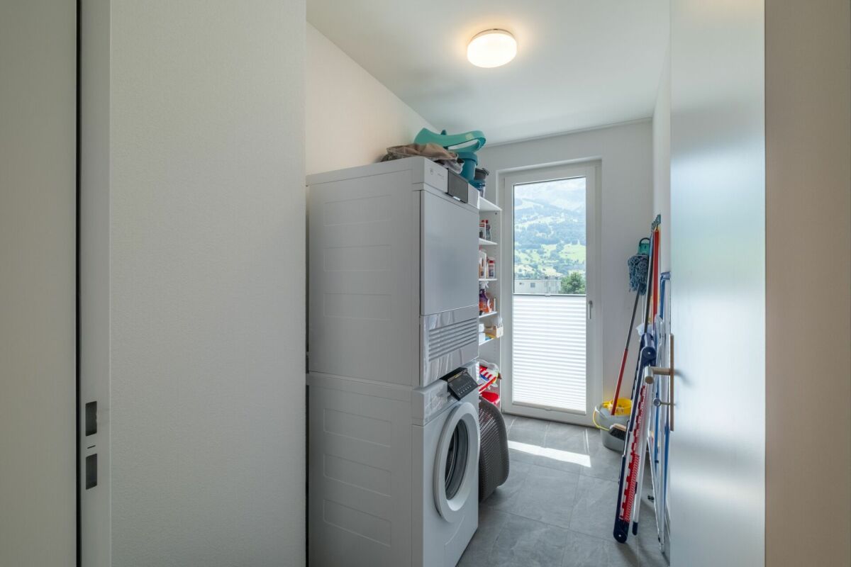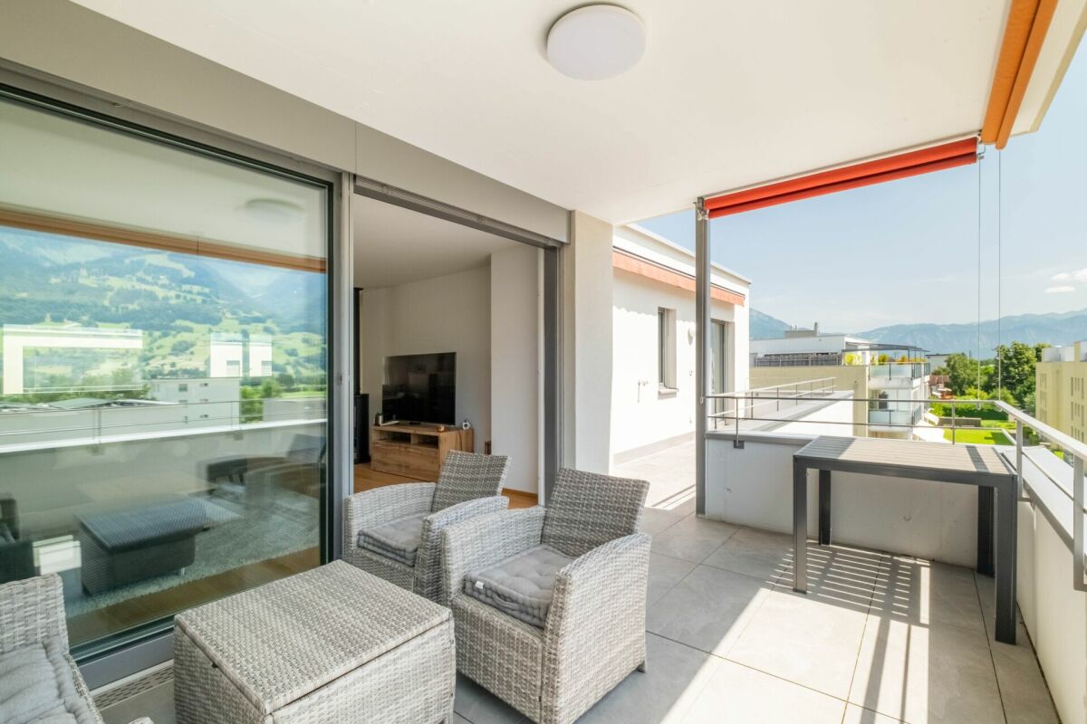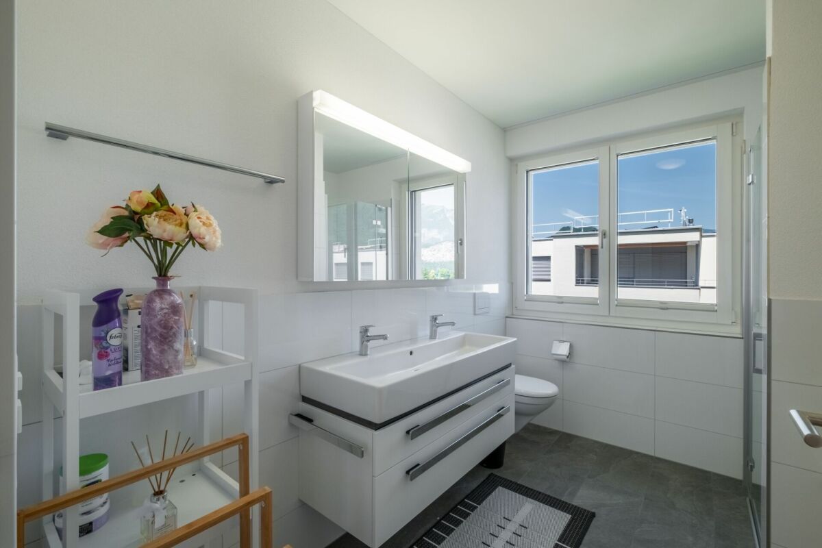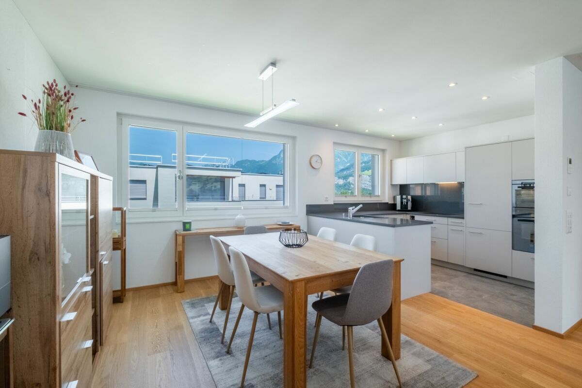 Ein besonderes Highlight ist die grosszügige Terrasse mit offenem und gedecktem Bereich – perfekt für sonnige Stunden, entspannte Abende oder gesellige Anlässe mit beeindruckendem Ausblick über die Dächer der Umgebung bis hin zum imposanten Bergpanorama.