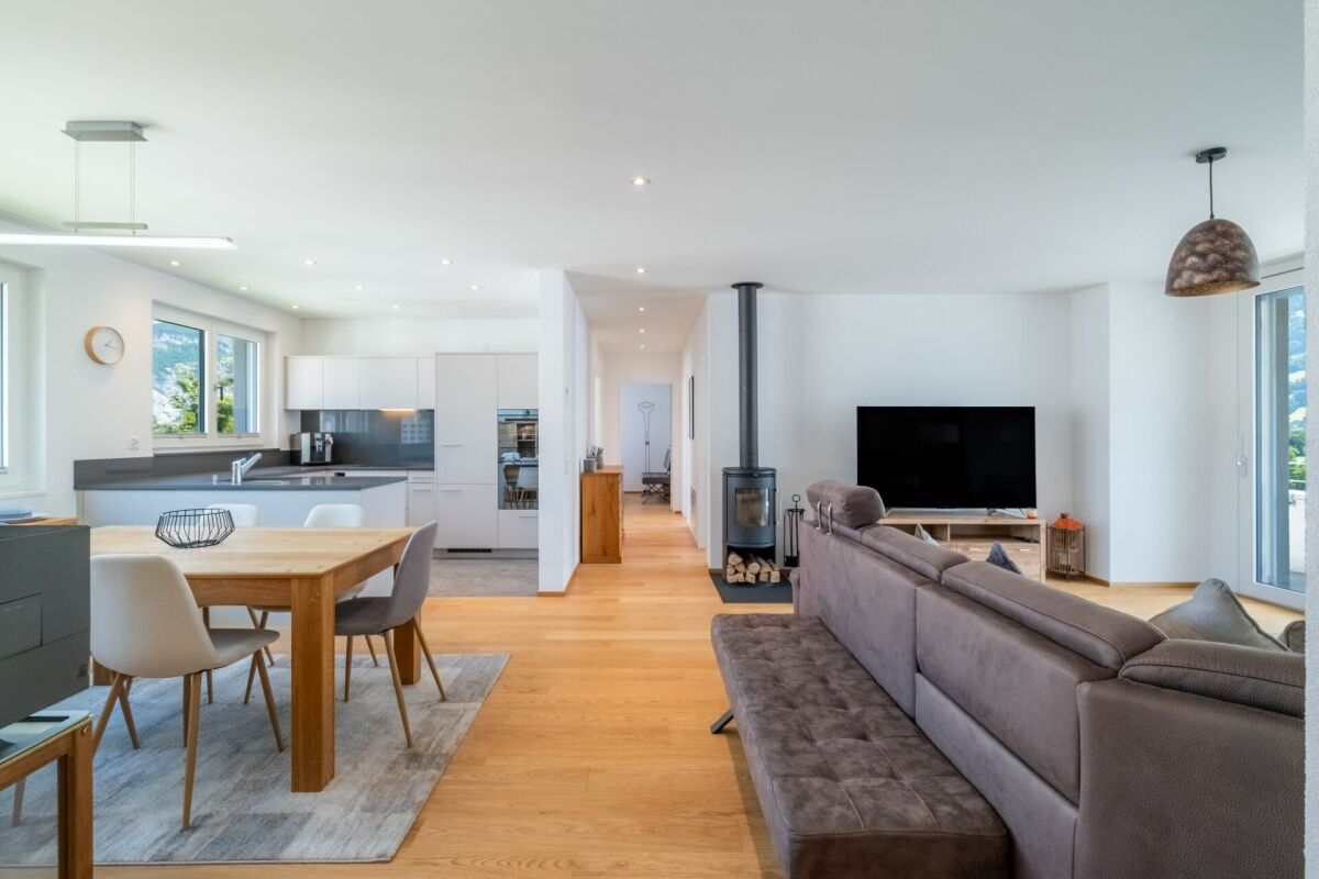 Diese lichtdurchflutete Attikawohnung im 4. Obergeschoss besticht durch ihre zentrale Lage, in unmittelbarer Nähe des Bahnhofs Sargans sowie durch eine grosszügige Raumgestaltung mit viel Charme. Mit 112 m² Wohnfläche und einer 28 m² grossen Terrasse bietet sie ein komfortables Wohnambiente, das sowohl Platz als auch Lebensqualität garantiert. Die dreiseitige Ausrichtung nach Norden, Osten und Süden sorgt für eine natürliche Belichtung aller Räume und schafft eine helle, freundliche Wohnatmosphäre. Der durchdachte Grundriss bietet ein angenehmes Raumgefühl, welches zum Verweilen einlädt. Herzstück der Wohnung ist der offene Wohn- und Essbereich mit Cheminée sowie die funktionale und grosszügige Küche, welche Ihnen bei der Zubereitung köstlicher Gerichte ein Lächeln auf die Lippen zaubern wird.