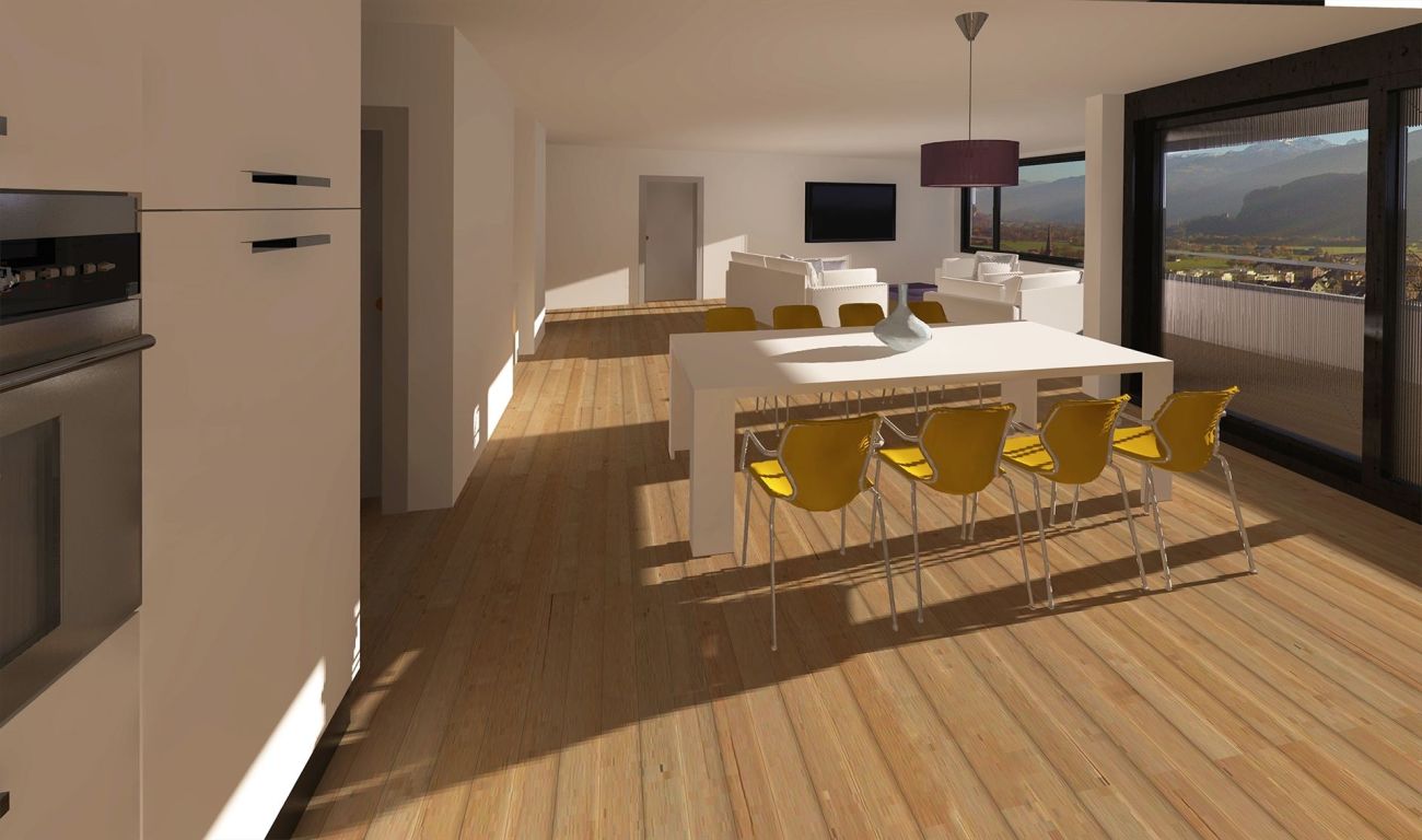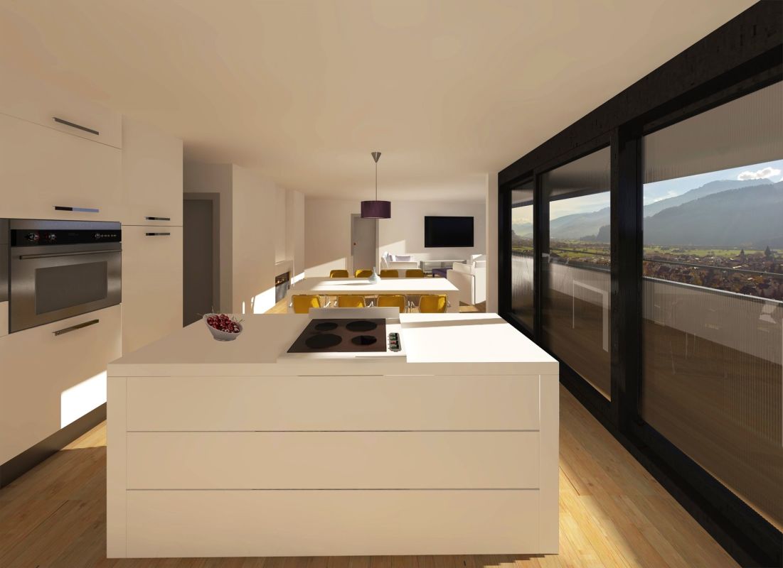 Die Wohnungen sind alle sehr gut besonnt. Grosse, überdachte Loggien resp. Sitzplätze sind den Wohnungen zugeordnet. Die Küchen bieten ausreichend Platz und sind zusammen mit dem Wohnbereich offen gestaltet, so dass lichtdurchflutete und grosszügige Räume entstehen.