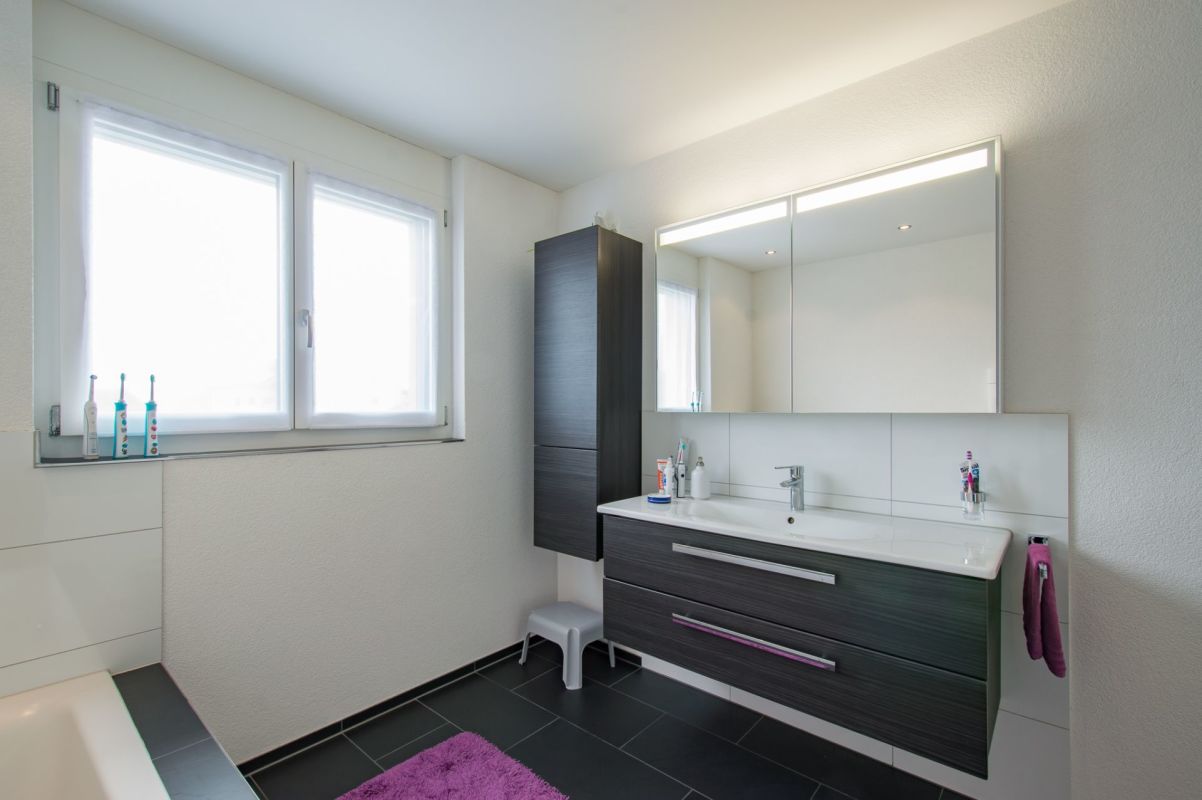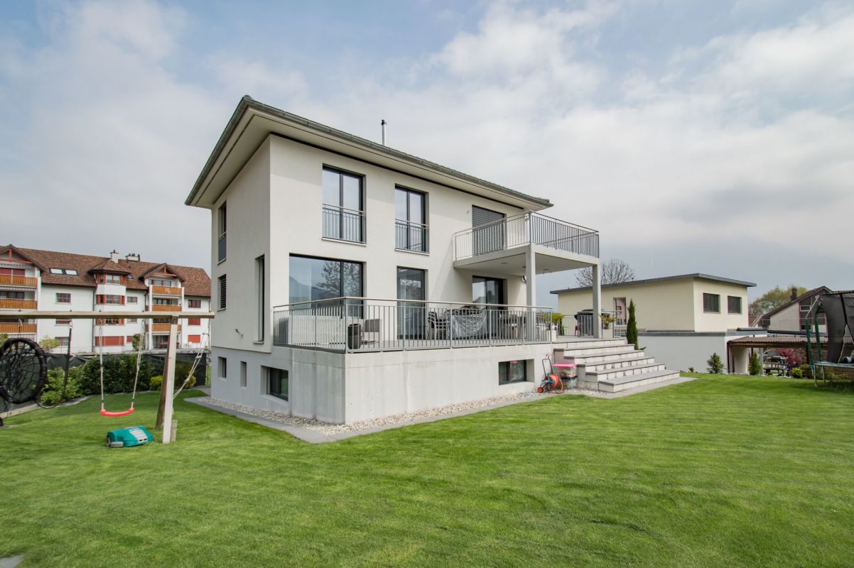 Das im Jahr 2013 erstellte Einfamilienhaus verfügt über eine solide Bausubstanz (Massivbauweise). Die Materialien wurden sehr neutral und zeitlos ausgewählt.