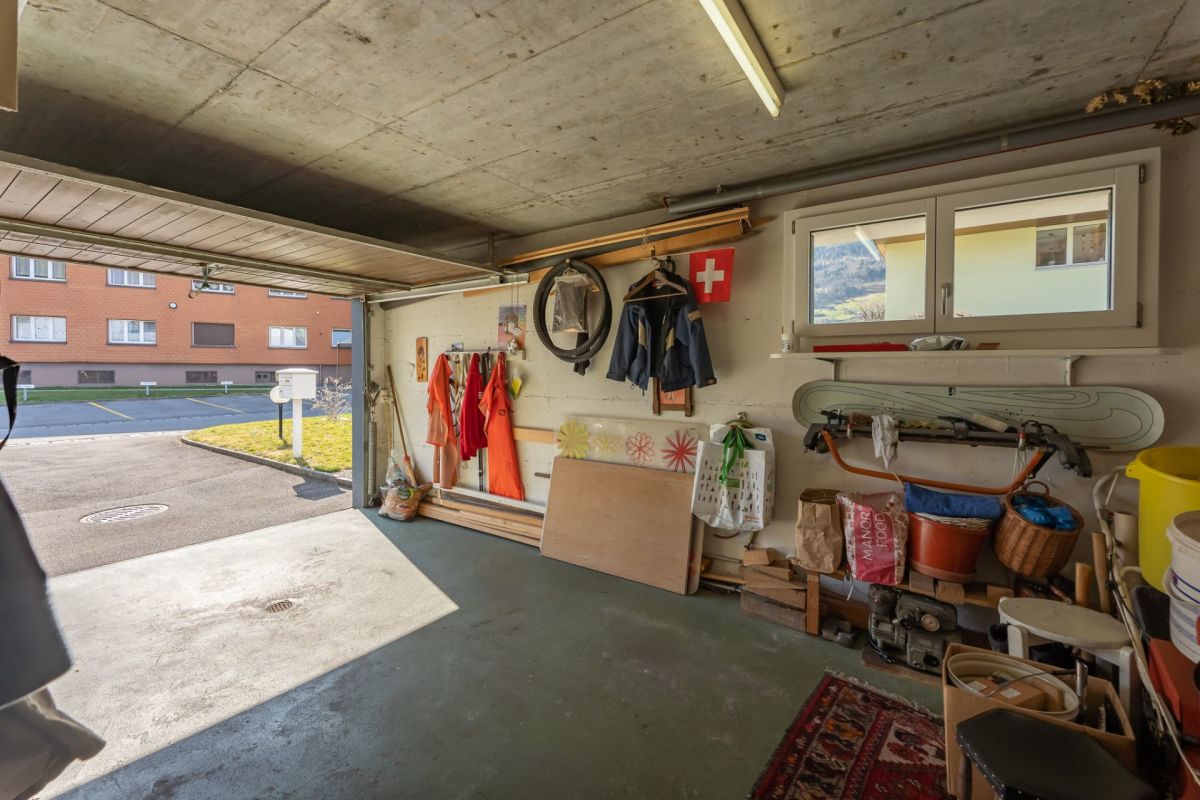 Für Fahrzeuge steht ausreichend Platz zur Verfügung. Nebst der Einzelgarage können vor dem Haus vier weitere Fahrzeuge abgestellt werden.