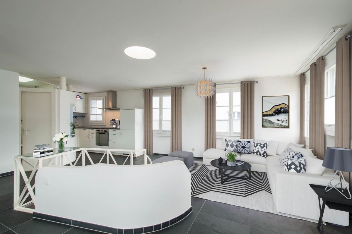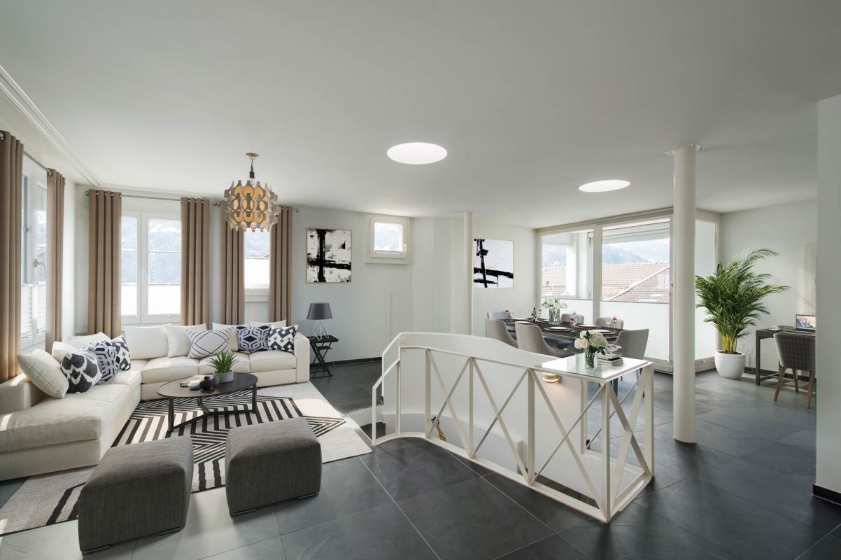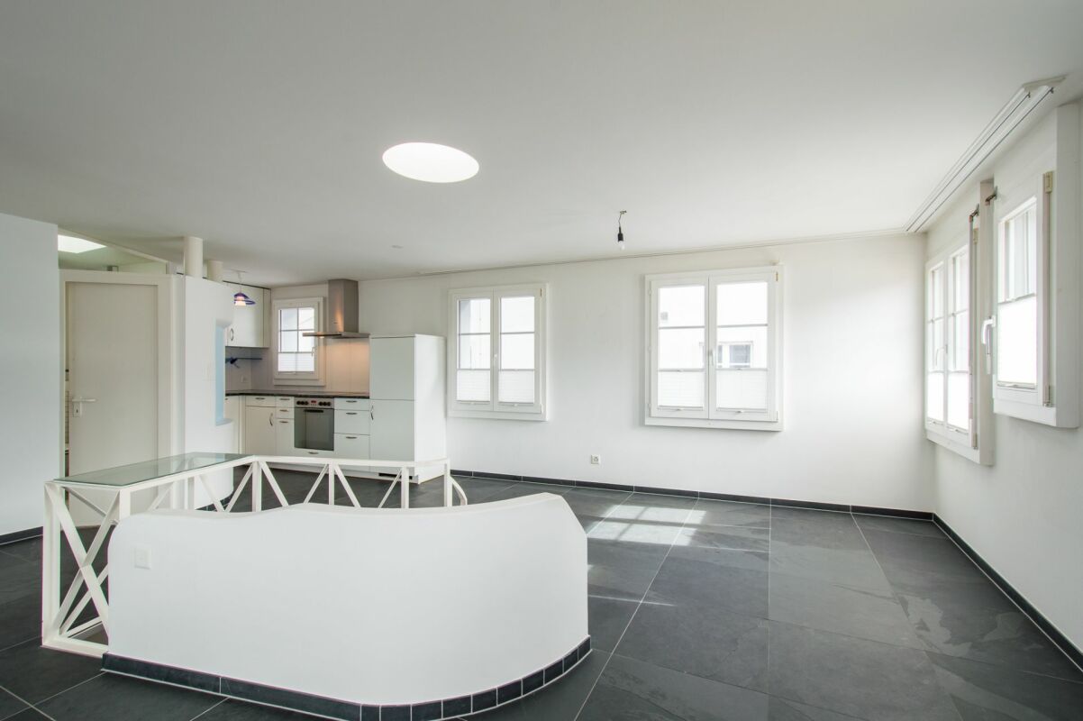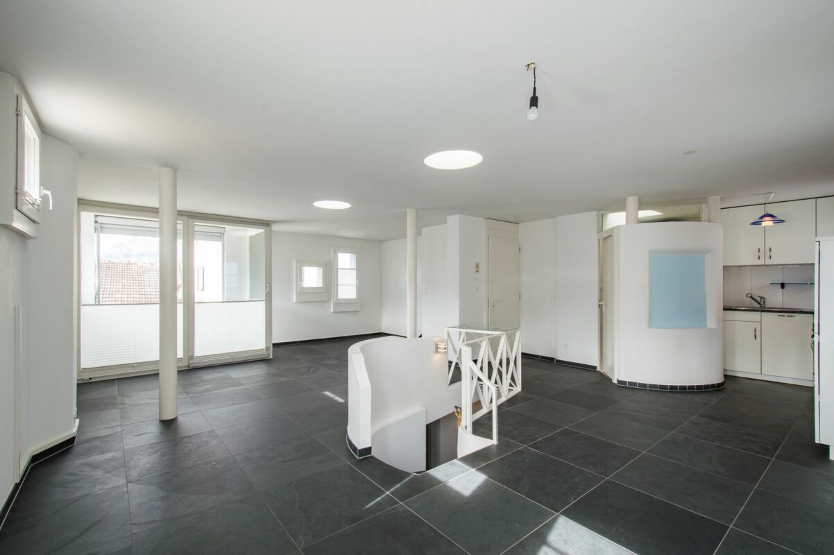 Diese 4 ½-Zimmer-Maisonette-Wohnung in Maienfeld befindet sich mitten im Städtchen. Öffentliche Verkehrsmittel, Einkaufsmöglichkeiten und Schulen sind schnell zu erreichen. Die Wohnung ist in zwei Etagen aufgeteilt. Beide Etagen sind mit dem Lift zu erreichen. Der geräumige Wohn-/Koch- und Essbereich mit Balkon und Gäste-WC befindet sich im 3. Obergeschoss. Die drei Zimmer im 2. OG können durch die direkte Treppe innerhalb der Wohnung oder über das Treppenhaus/Lift erreicht werden. Das Elternzimmer verfügt über Dusche/WC. Für die übrigen Bewohner steht ein weiteres Badezimmer bereit.