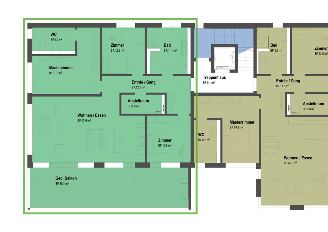 + 39.3 m² gedeckter Balkon
