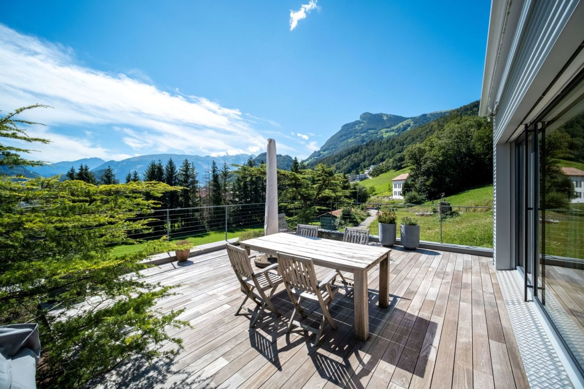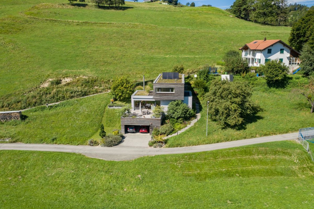 Dieses neuwertige und moderne 5 ½-Zimmer-Einfamilienhaus befindet sich an sonniger und ruhiger Hanglage an der Grenze zur Landwirtschaftszone und doch nicht weit vom Dorfzentrum entfernt.