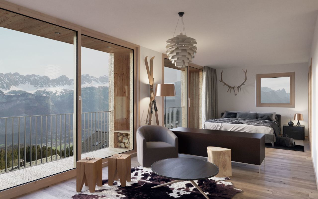 Diese Ferienwohnung befindet sich im pragmatisch-eleganten Neubau des Hotels Tannenboden. Im März 2020 erfolgt der Baustart. Die Fertigstellung der Eigentumswohnungen ist auf April 2021 geplant.